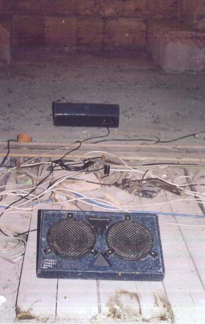 La Sala o Cella delle Urne Sepolcrali Romane viene attraversata su di un ponticello a circa 5 metri dal fondo della sala. Il pubblico ascolta sia durante la salita che durante la discesa, una musica di sottofondo, diffusa peraltro a volume piuttosto elevato. Per sfruttare la riflessione naturale delle pareti nude di questa sala ho posizionato due floor monitors ai lati del ponticello diretti verso la volta. Nella prima foto possiamo osservare i due diffusori visti dal suolo, nella seconda un monitor visto dal ponticello.