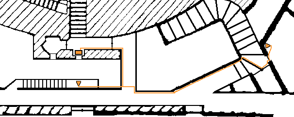 In un vano sopraelevato posto al termine della Rampa Elecoidale Romana (foto) : 1 Rack (giallo) con un finale ECLER PAM 1360, 1 finale SOUND SYSTEMS PWA 600 ed 1 crossover elettronico BEHRINGER SUPER X per i diffusori UPA 1-c della Rampa Elicoidale Romana alta e bassa, ed inoltre un finale ECLER PAM 1360 con un solo canale utilizzato per i due diffusori MITRA 12 della Rampa Diamentale bassa, in parallelo. Questa postazione si trova in una posizione particolarmente felice, essendo sullo stesso piano del diffusore per la Rampa Elicoidale alta (viola) (foto), ad una distanza di meno di un metro, essendo inoltre sulla verticale dell'ascensore storico, nel cui vano, dodici metri più sotto, si trova il diffusore per la Rampa Elicoidale bassa (blu) (foto), ed a cui quindi risulta molto facile collegarsi. Dietro una grata vi è poi la prima parte della Rampa Diametrale con la Regia ad una distanza di circa 15 metri. Appena dall'altra parte della Rampa vi sono i due diffusori Mitra 12 (rosso) (foto).